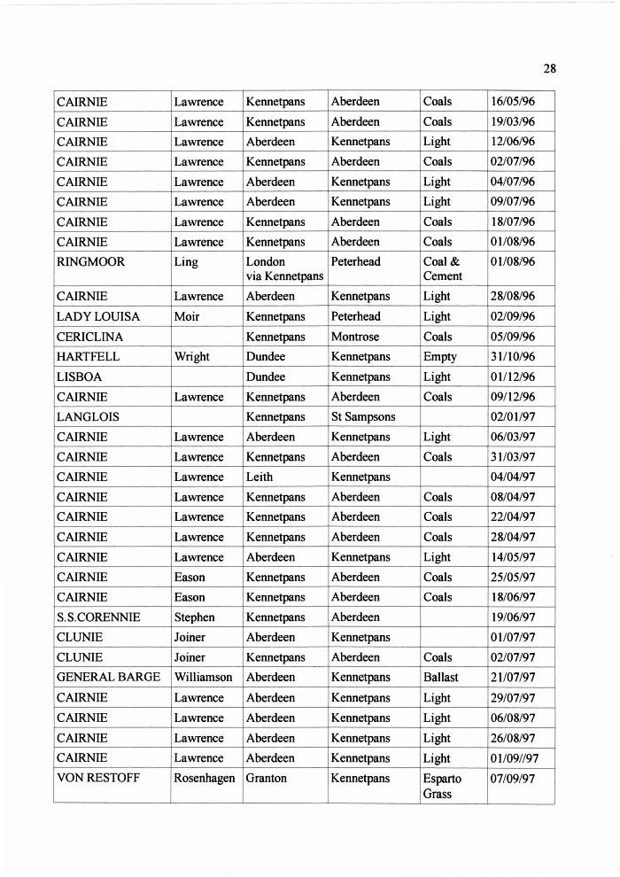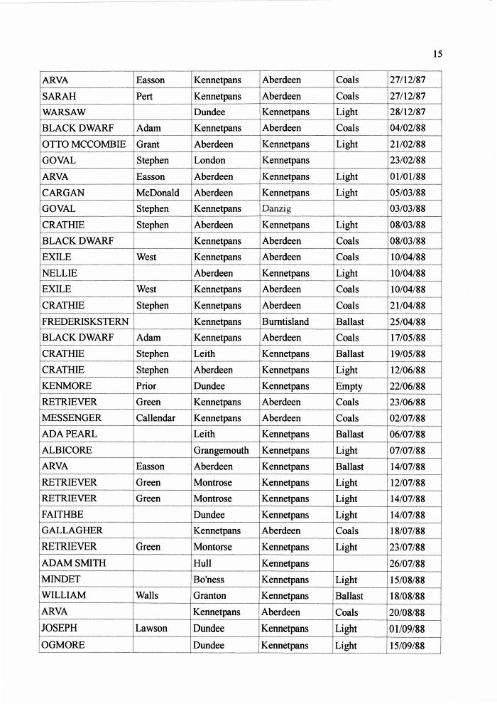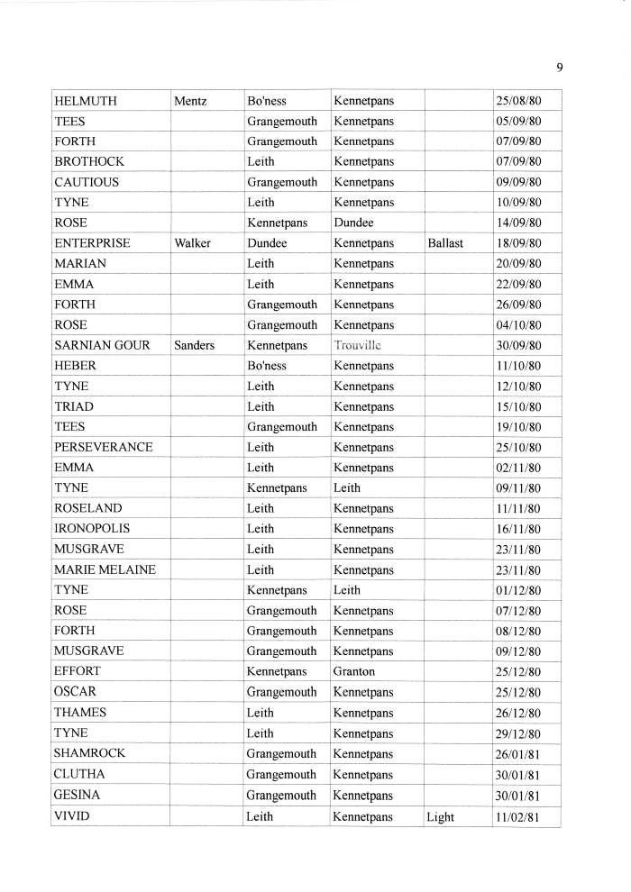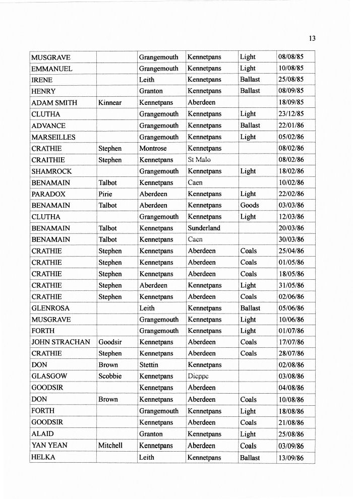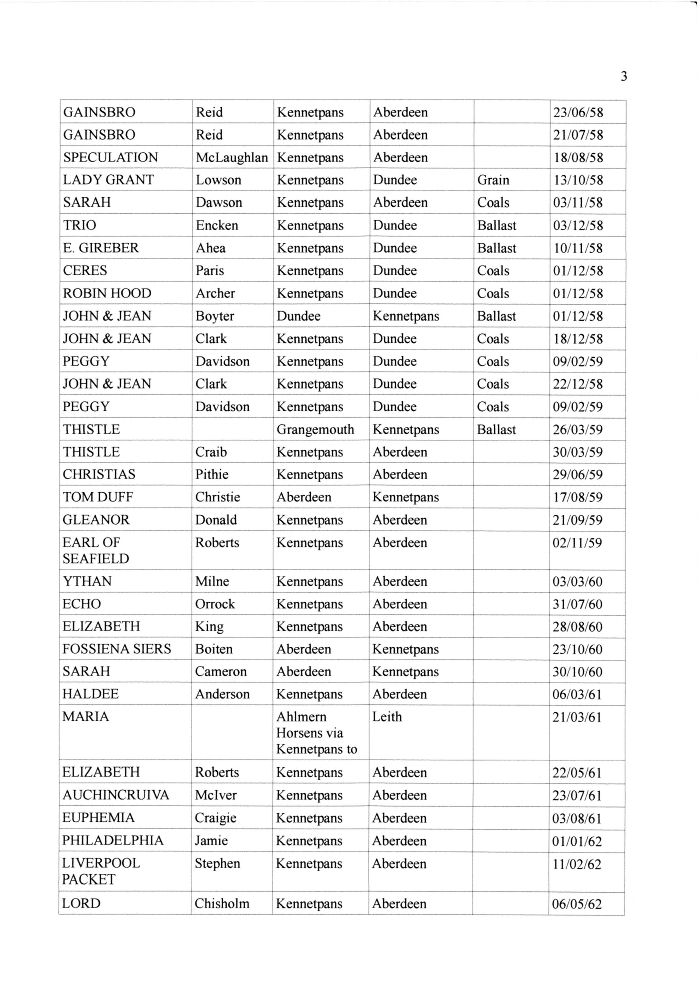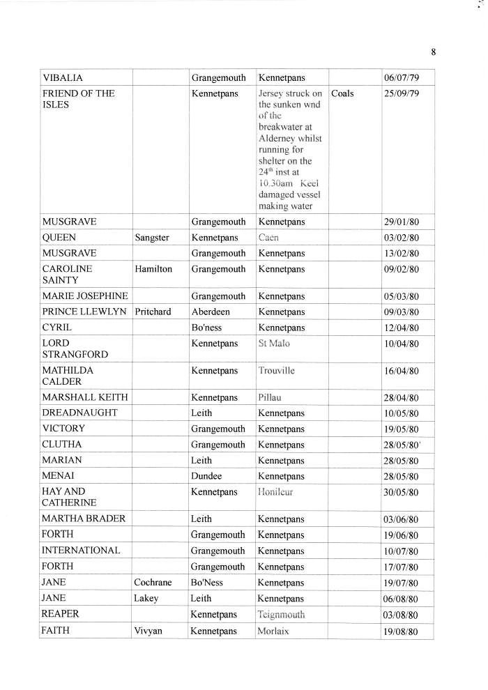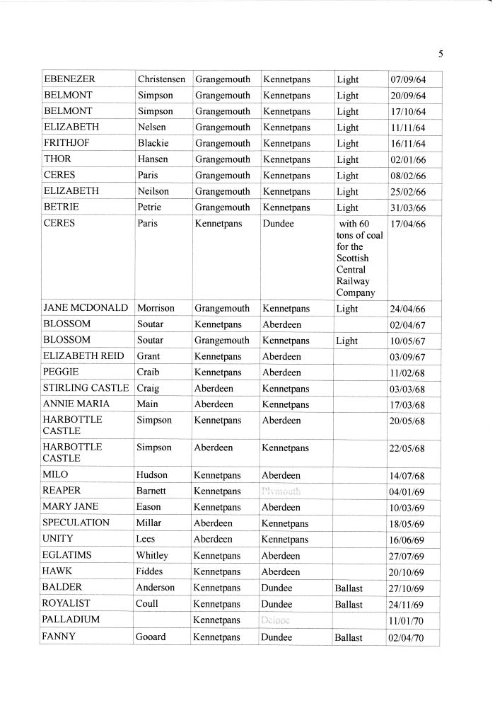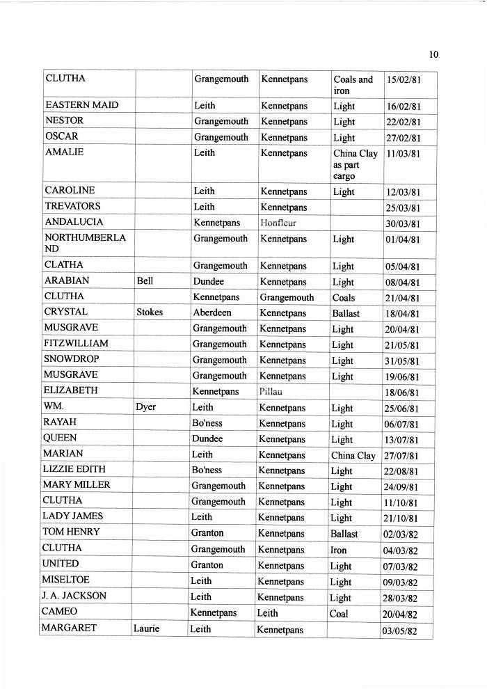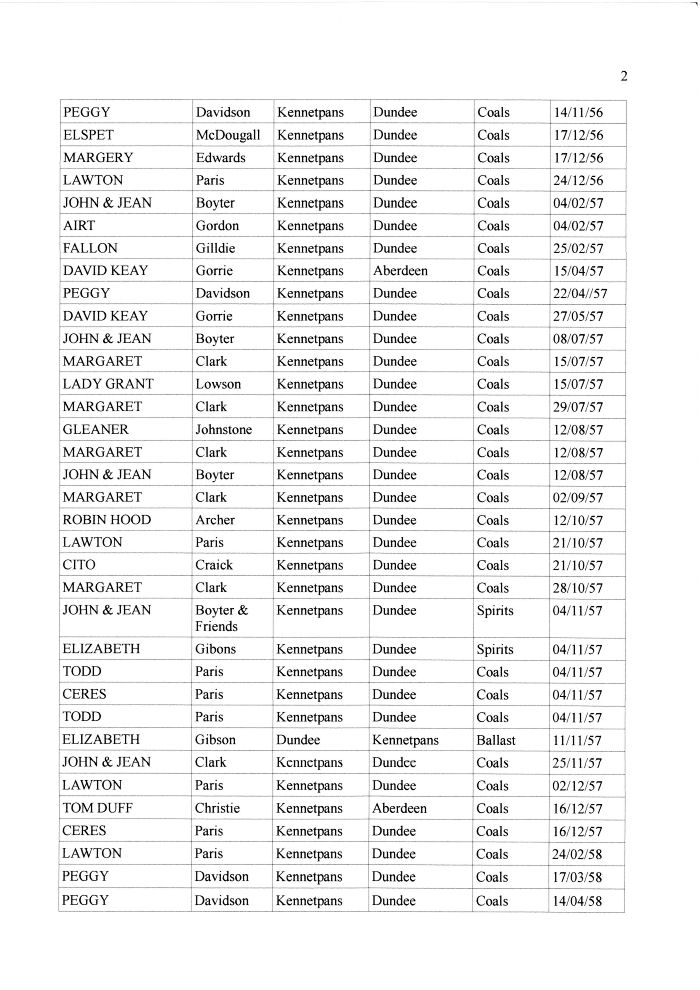 Shipping Registers by administrator | Nov 23, 2011 | Ports These are fairly comprehensive records of the ships and their cargo entering or leaving Kennetpans in the 1800s. These records were kindly compiled and supplied by Ernie from Dundee. Thanks Ernie.